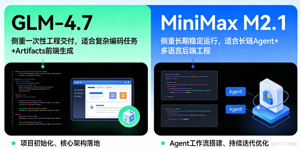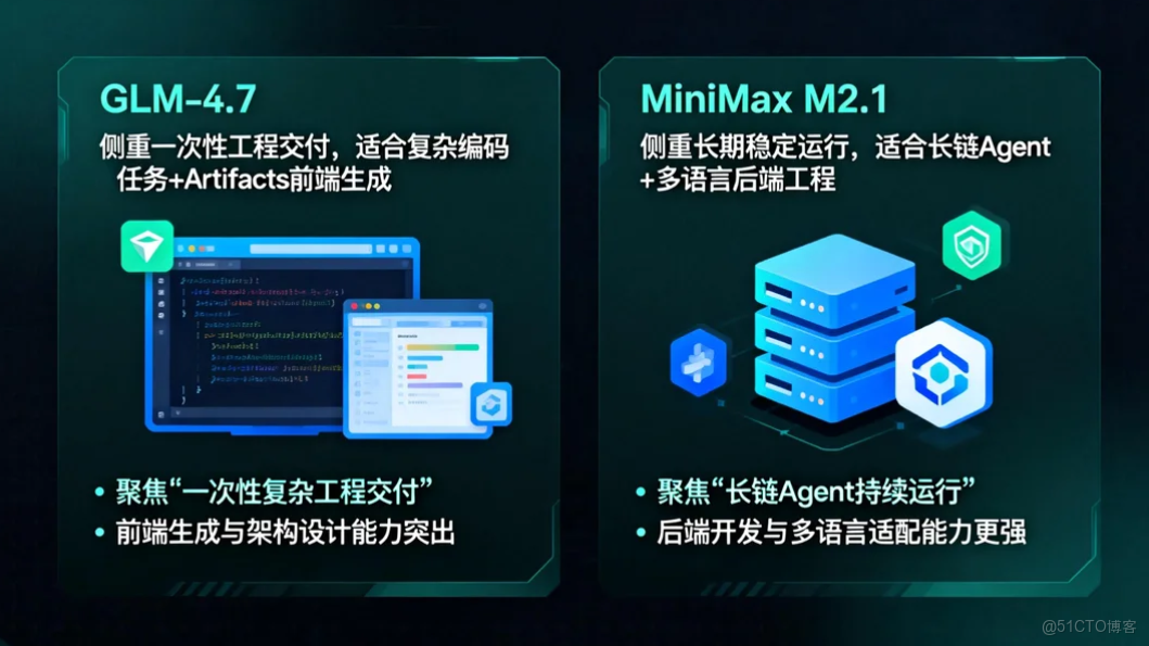 - MiniMax M2.1:聚焦“長鏈Agent持續運行”,後端開發與多語言適配能力更強。