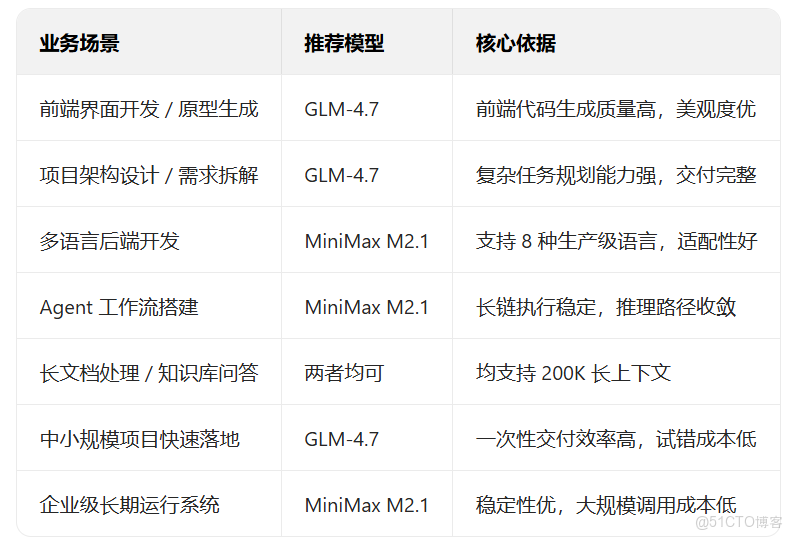 二、選型指南:如何精準匹配GLM-4.7與MiniMax M2.1?