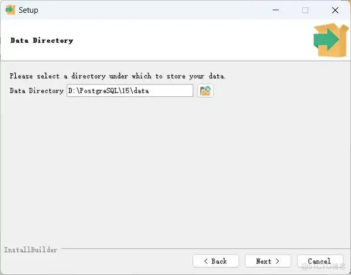 隨後,需要配置一下PostgreSQL數據庫的數據存放路徑。這裏建議就選擇前述安裝路徑下的data文件夾即可,如下圖所示。