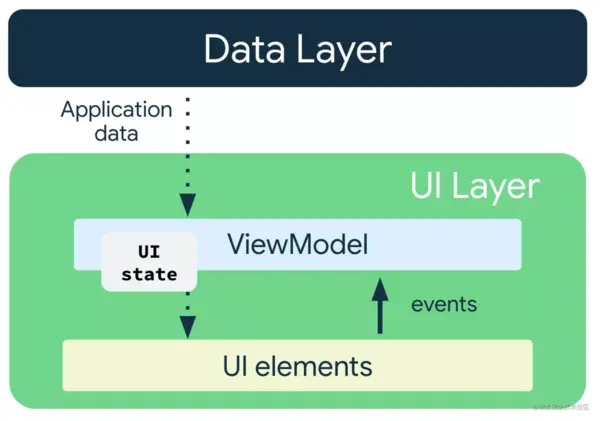 因此界面層一般分為兩部分,即UI層與State HolderState Holder的角色一般由ViewModel承擔