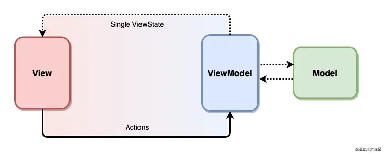 2. View層通過Action更新ViewState,替代MVVM通過調用ViewModel方法交互的方式