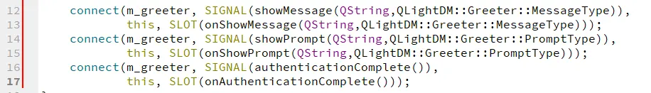 - 實例化 MyGreeterWrapper:m\_greeter,並監聽認證交互狀態信號(認證過程中消息提示、認證狀態機狀態變更、認證結果)