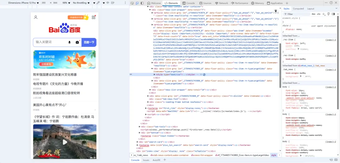 點擊頁面下的inspect,就可以實時看到手機上WebView頁面的顯示狀態了。(第一次使用可能會白屏,這是因為需要去https://chrome-devtools-frontend.appspot.com那邊下載文件)