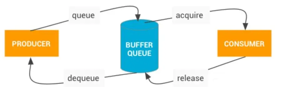 Android的顯示機制是一個典型的生產者-消費者模型。應用端負責生產畫面,通過調用SwapBuffer將內容寫入BufferQueue,系統端(SurfaceFlinger進程)則從BufferQueue中取出內容,執行後續的合成與顯示流程。