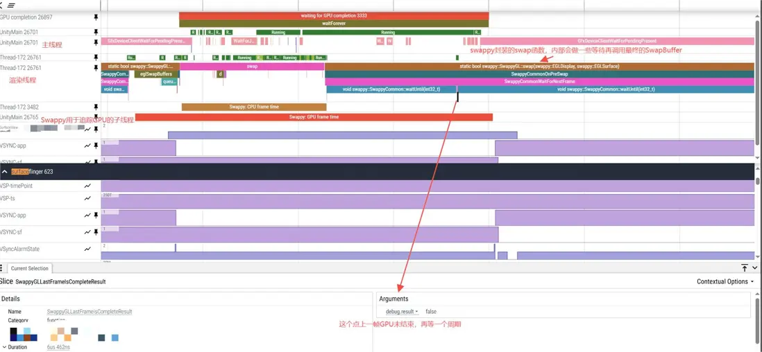 Hook了Swappy中的一些函數,將其標註到了Perfetto中以觀察其運行過程: