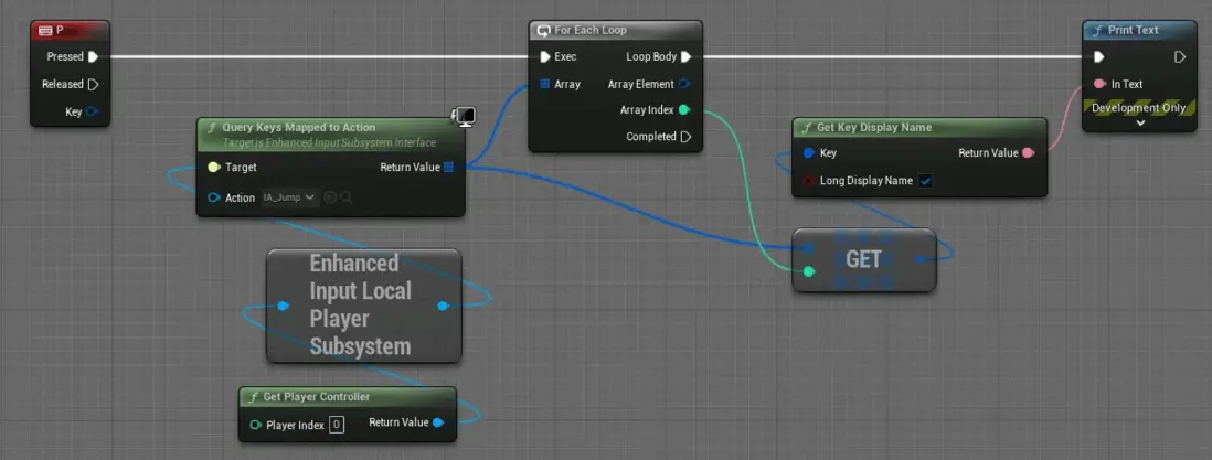 Q:在UE引擎中,我想創建一個系統,例如,它顯示:使用 [E] 打開門。玩家可以自定義按鍵設置,如何訪問這個輸入值,以便於我能在UI中更替為實際的按鍵?