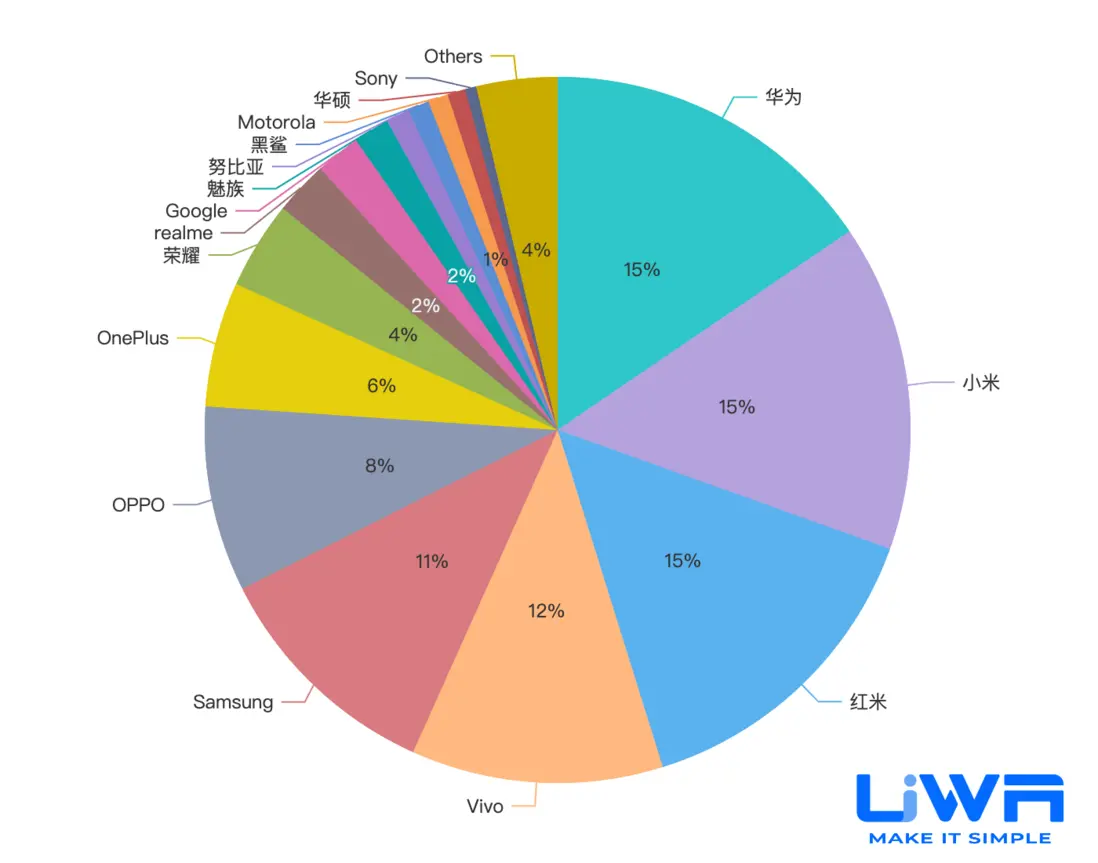 注:由於一個項目可以同時使用多個品牌的設備進行測試,統計中進行了規範化,使佔比總和為100% 。