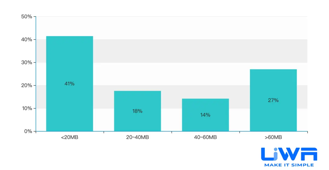總體堆內存一直是項目的內存瓶頸,雖然在過去一年有所起伏,但有58%的項目堆內存大於100MB,大於200MB的項目也佔24%。這主要是遊戲的重度化所致,但另一方面也是研發團隊對於Mono堆內存分配疏於管理所致,例如配置文件的序列化庫使用不當等,建議研發團隊在項目中前期選擇序列化庫時儘可能做更多的調研或者實驗,來制定更合適合於自身項目的序列化配表解決方案。