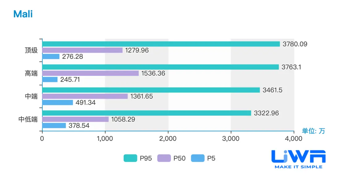 本次發佈我們針對不同檔次的機型進行分析,依據UWA設定的設備算力進行分檔。以下是每種檔位的典型機型:
