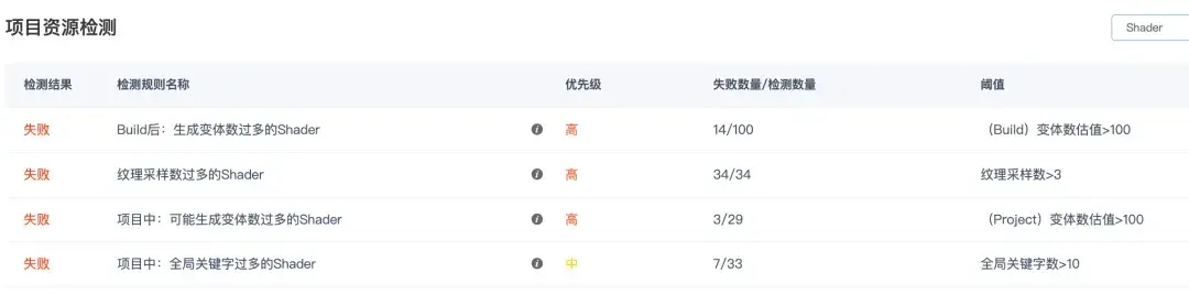同時,也建議研發團隊結合本地資源檢測服務,對Shader相關的規則做檢測,尤其是變體數量。