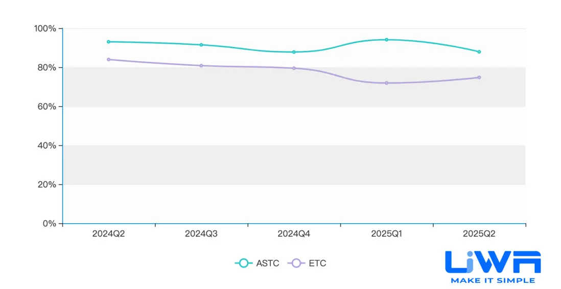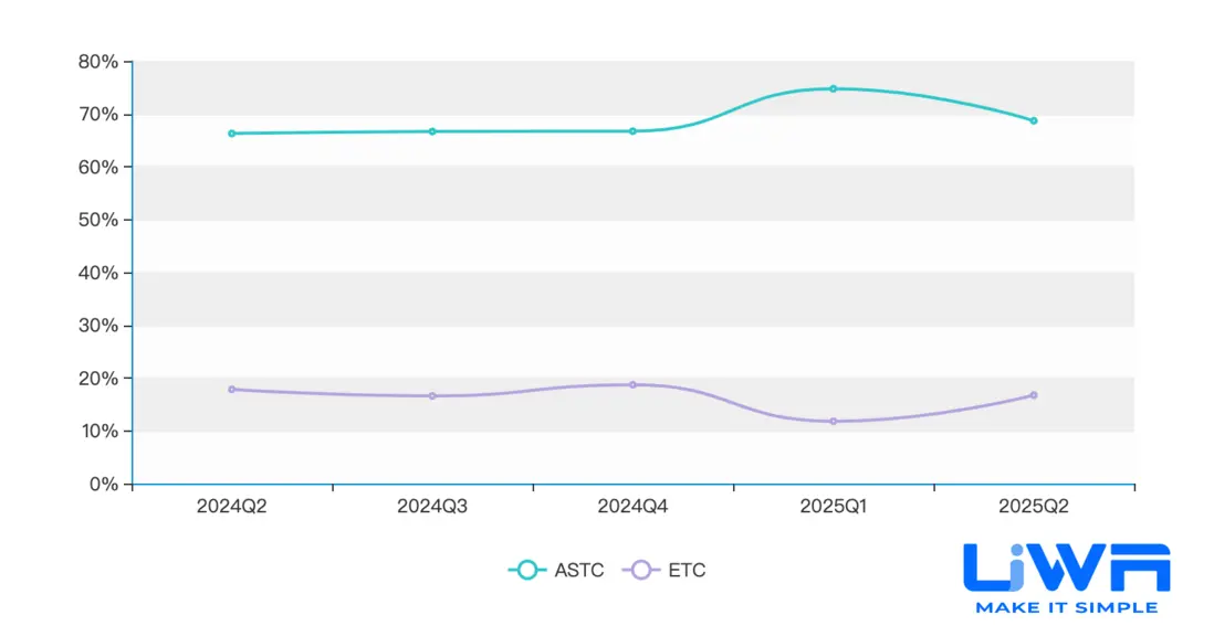 ASTC/ETC格式紋理運行時數量佔比走勢