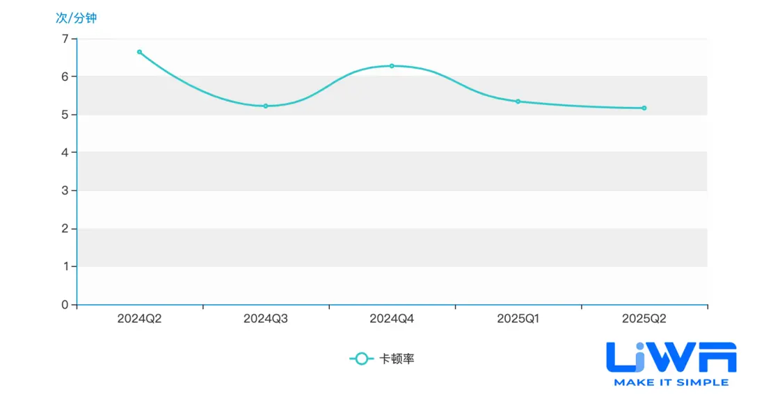 卡頓均值在2025年Q1上揚,後續卡頓值維持在6次/分鐘,建議研發團隊使用UWA GOT Online - Overview模式測試,並通過卡頓分析功能來進行檢測和優化。