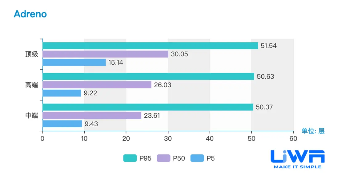 在最近一年的移動遊戲測試中,無論是Mali芯片還是Adreno芯片,其Overdraw層數基本上都維持在4~8層左右,如下圖所示。