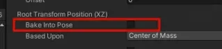 A2:我用了一個奇招解決了,在Unity中,對FBX動畫文件裏的Animation複製一份出來,此時就可以使用Unity的編輯器直接編輯動畫了,找到它對Root節點的動畫控制,刪除掉,就正常了: