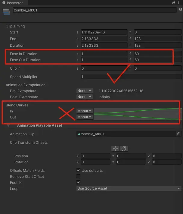 Q:請教一個Timeline和Animator動畫混用會出現動畫【硬切】的問題: