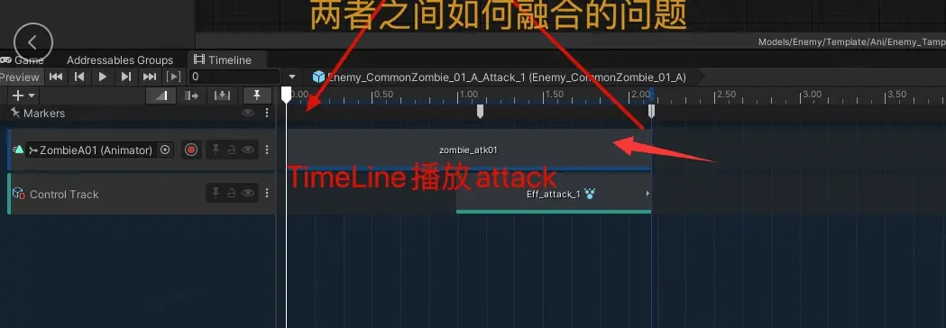 感覺Timeline和Animator之間好像沒有融合,他們的融合是獨立的:Animator播放Idle,Timeline播放Attack。