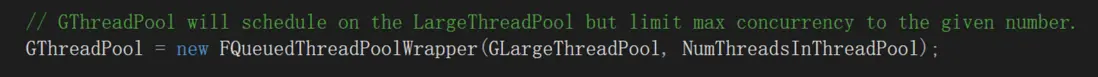 不是真正的線程池,而是另一個線程池的包裝,任務都會轉發過去。UE5 Editor下GThreadPool就會設置成這個,包裝了GLargeThreadPool,目的為共用GLargeThreadPool中的線程,類似FQueuedLowLevelThreadPool共用TaskGraph的線程,因為Editor下後台任務更多,因此單獨使用了GLargeThreadPool。這麼做的目的還是減少線程創建。
