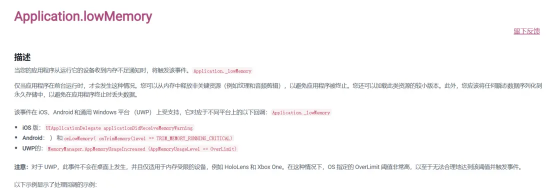A1:由於Application.lowMemory僅在內存極其緊張時觸發,因此不應該過度依賴這個回調來管理內存,尤其可能比較常見但其實有問題的、在回調中調用RUUA回收Unused資源的做法,不但降低內存的效果有限還會觸發卡頓。正確的做法是通過優化資源管理、減少不必要的內存佔用等方式來預防內存問題;或調用Resources.UnloadAssets或AB.Unload(True)的方式定向卸載內存。