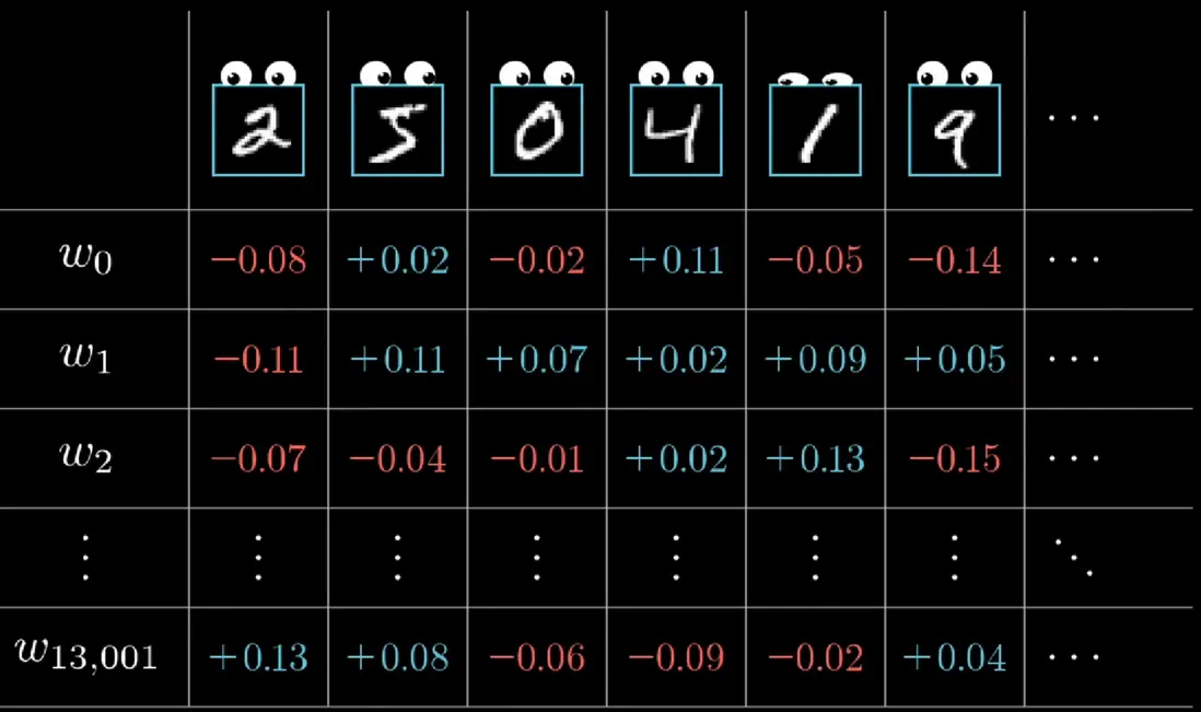 順帶一提,權重的更新都是建立在「梯度」之上的,「梯度」可以理解為對神經網絡整體權重的變化趨勢。你想,有這麼多權重要更新,有時訓練一個樣本A後,會要求權重w0+ = 0.01、w1- = 0.05以減小誤差,但訓練下一個樣本B時,又要求w0- = 0.02、w1+ = 0.04,一個訓練集有這麼多樣本,要以哪個樣本訓練時產生的權重變化為準呢?