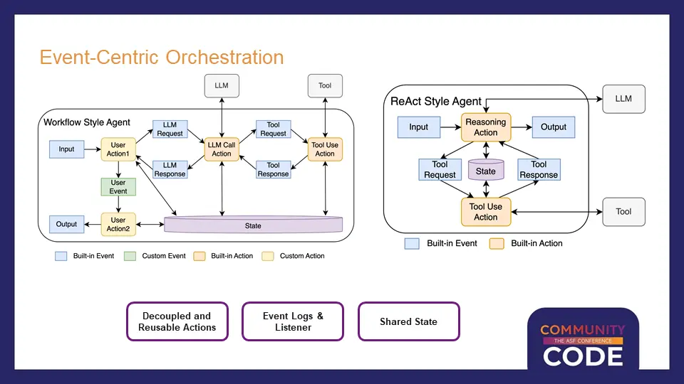 Flink Agents的架構設計體現了幾個核心設計理念。在智能體核心概念方面,沿用 AI Agent 的核心概念,對熟悉 Agent 的開發者沒有額外學習成本。在API層面,項目支持Python和Java兩種編程語言,同時提供不同接口來支持Workflow和ReAct兩種編程模式。