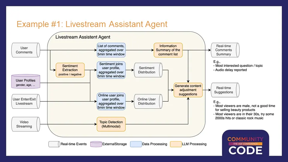 第一個典型應用場景是實時直播分析。在網絡直播或直播帶貨過程中,熱門直播間會產生大量的觀眾評論和彈幕。主播無法實時逐條閲讀和分析所有內容,傳統做法需要配備後台分析團隊和導播來完成這項工作。