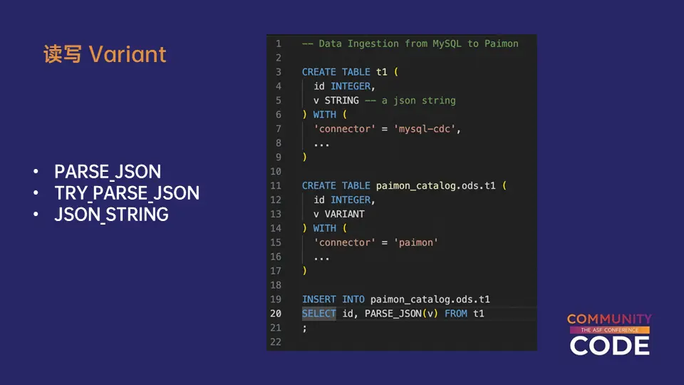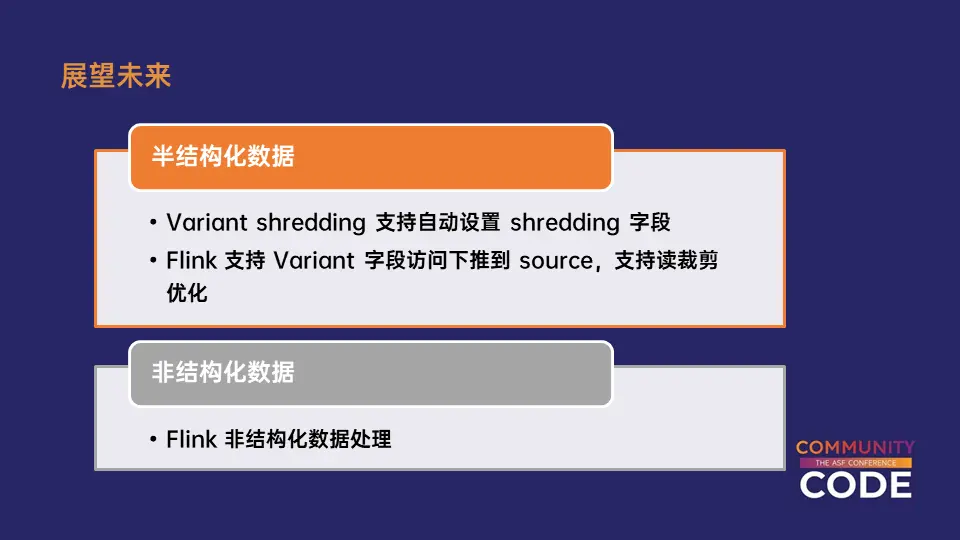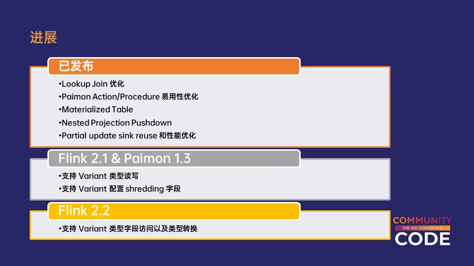 在Flink 2.1和Paimon 1.3的版本發佈中,重點關注Variant數據類型的基礎支持能力。這個版本將提供完整的Variant類型讀寫功能,使得用户能夠在Flink和Paimon中原生處理半結構化數據,而不需要依賴複雜的字符串解析操作。
