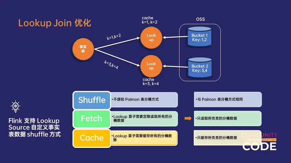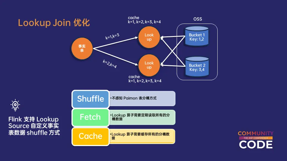 該解決方案涉及擴展Flink的Lookup Join架構以支持自定義 shuffle 策略。這確保了預期到特定Paimon分桶的記錄由負責該分桶維度數據的相同 Lookup 算子處理。