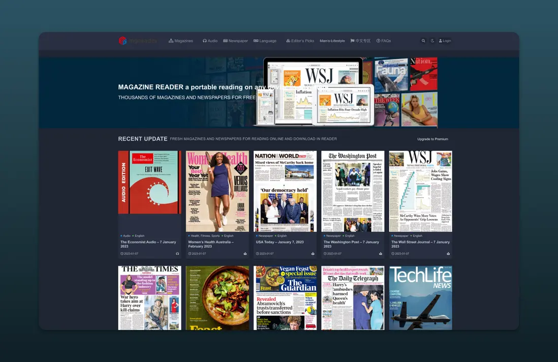 這個網站收錄了很多最新的外刊,練習英語的好地方。也可以下載下來看。