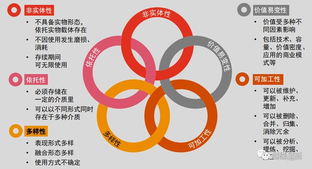 普華永道將數據資產的基本特徵總結為五點,即非實體性、依託性、多樣性、可加工性和價值易變性。