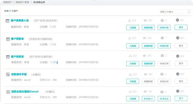 睿治數據資產提供豐富的應用,我們可瞭解資產類型、大小、創建時間,並查看資產元數據信息、數據、進行申請交換、下載數據、歸檔數據等操作,以實現對數據資產的快速便捷管理。