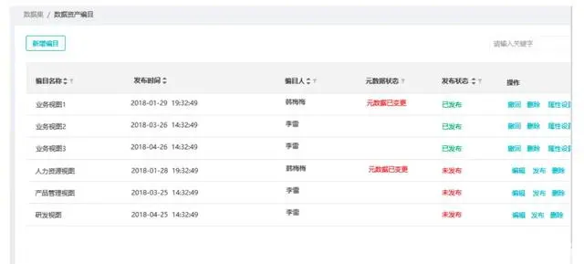 不同角色對所查看的資產視圖需求也不同,因此平台提供不同視角的數據資產編目, 如技術視角、業務視角、管理視角等。