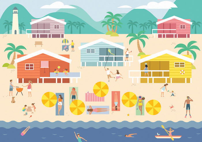 Wonderful color choices. Love this special 2D approach where things are viewed from 2 different angles, top and front. Makes you hardly wait for summer to arrive!
