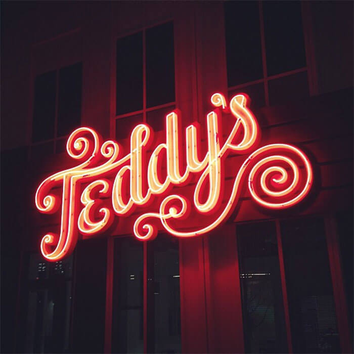 Big neon sign for Teddy's Nacho Royale, a burrito joint on the campus of a large social media company. Had no clue that they could create such attractive neon signs.
