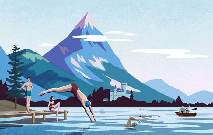 Illustration for Lonely Planet’s book. A illustration style reminiscent of mid-century hand-painted billboards.