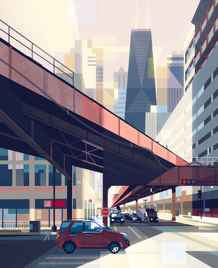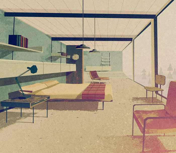 Julien Pacaud is a French illustrator with a very particular style that you could describe as retro-futuristic.