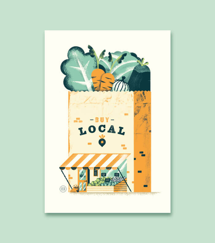 Cool idea to visualize a campaign to ‘buy local’ this way. Creative! Also digging those grunge effects.