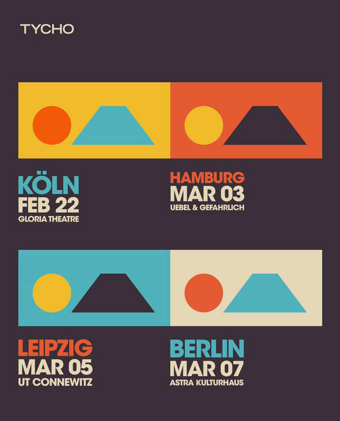 I have been enjoying Tycho's latest album and wanted to go see Scott live in Brussels but it's sold out already. This is the world tour poster.