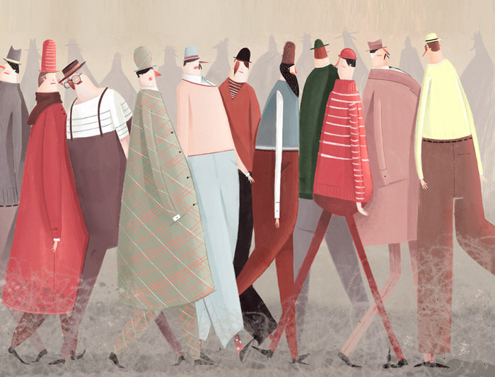 This is so wonderful! The colors, the faces, the cloths, the subtle shadow behind them… When I see something like this, it itches and I want to start illustrating just right away.