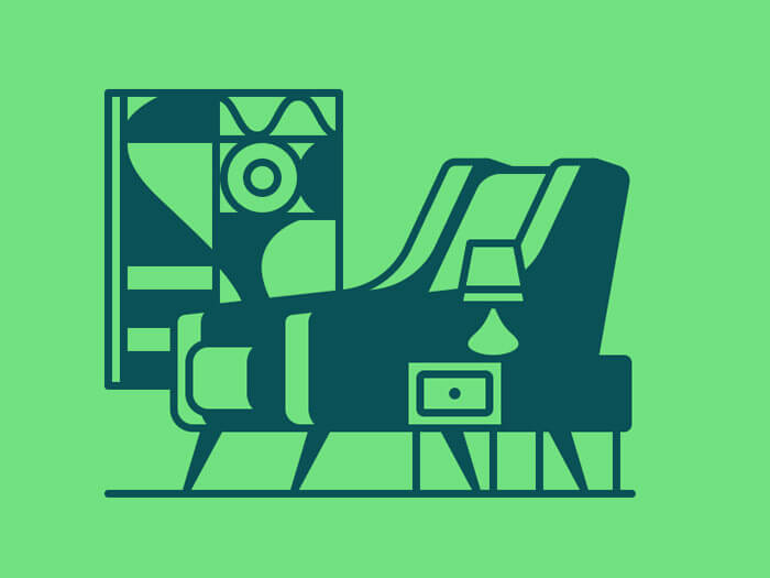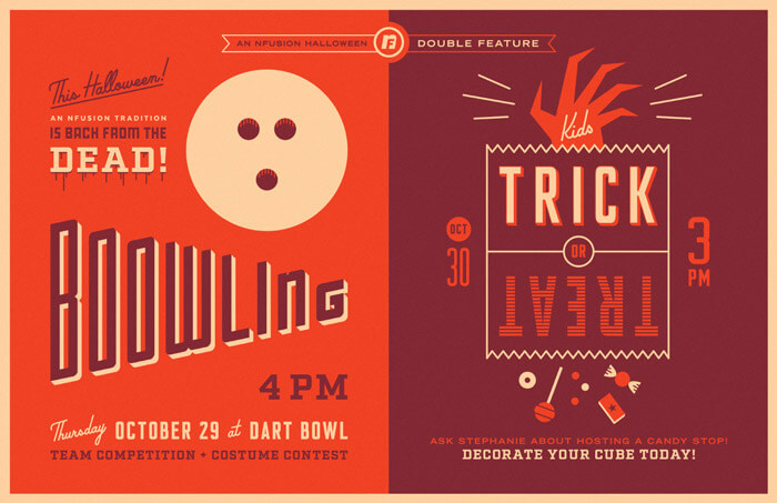 I adore the mid-century feel to this great example of what can be accomplished with just a couple of colors and strong lines.