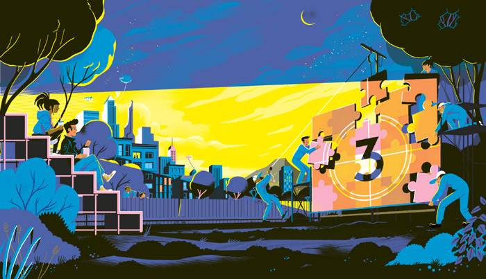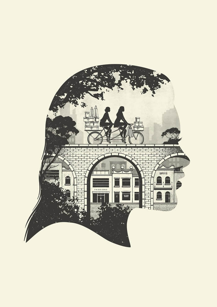 A super-duper color palette to begin with and loads to discover in this editorial illustration for the Wall Street Journal. With all this action going on, you won’t be able to stop looking at it.