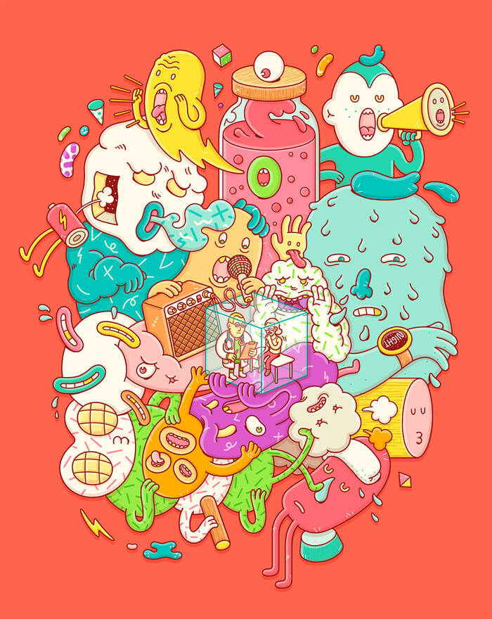 Admiring the not-so-common color palette. The perspective used in this illustration is also quite inspiring.