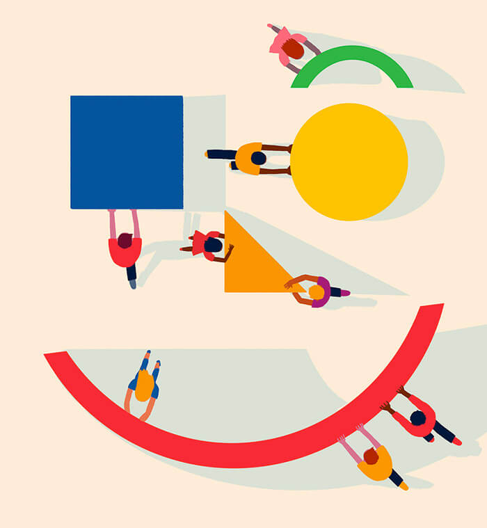 Loving the style of these illustrations for the Milestone Institute. Great to analyze the use of simple shapes. Great colors, too!