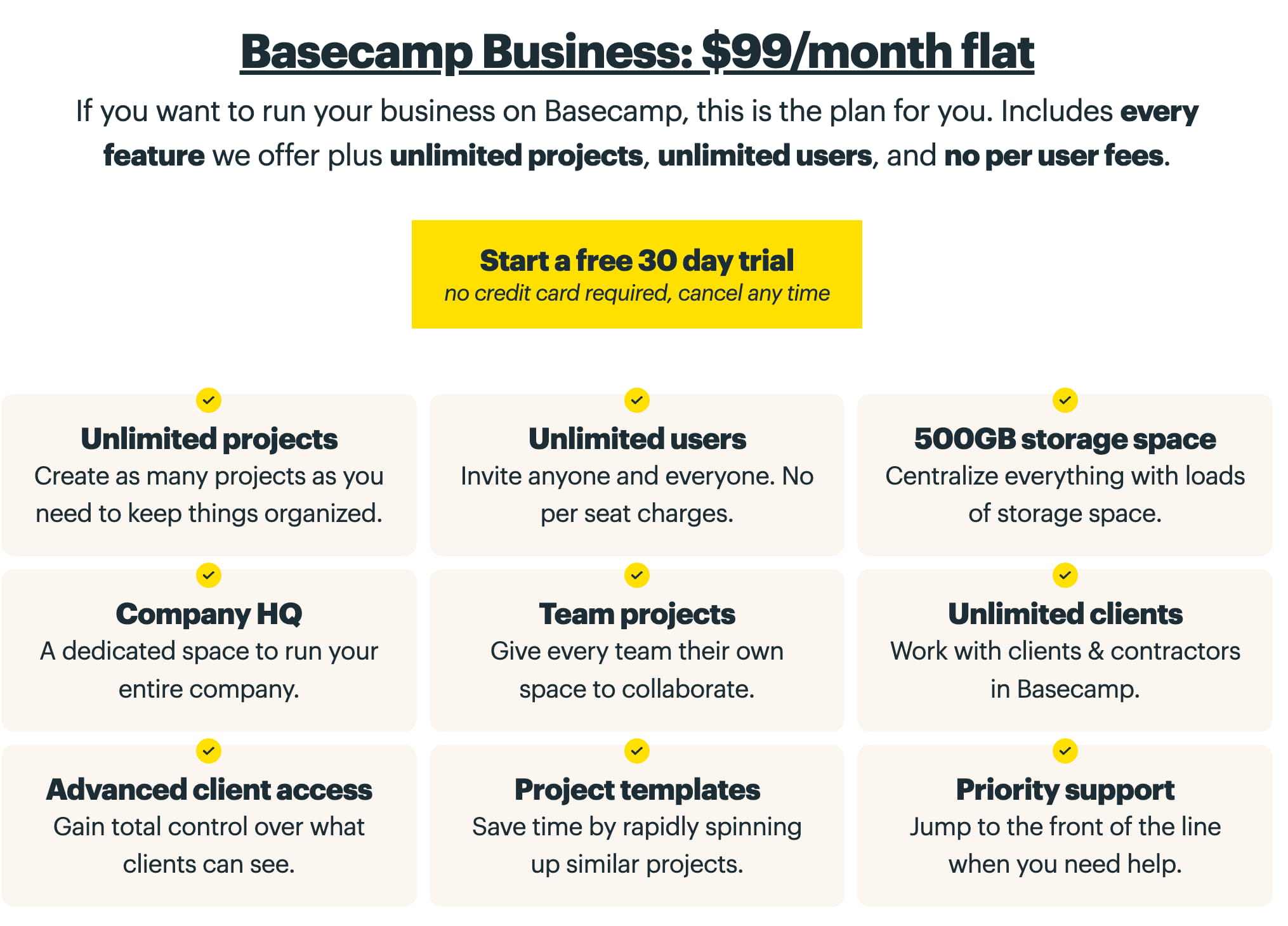 Basecamp takes a similar approach by highlighting the main “business” plan but also explaining how the personal plan is different: it just doesn’t have some features that the main plan does. We can illustrate it by literally crossing out the features that are missing in that plan.