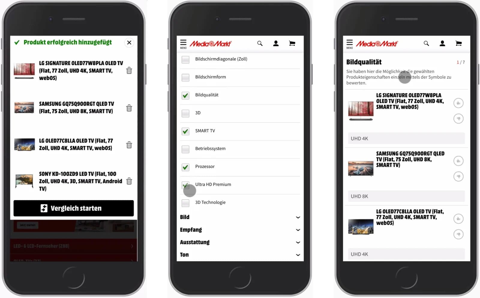 One of them is provided by Mediamarkt. Instead of displaying a feature comparison table, we ask users what features they are interested in, or perhaps what role would apply best for them, and then display each feature as a separate step. In each step, we explain the differences between plans for each feature — rather than showing a table which would leave it to the user to make the comparison on their own.