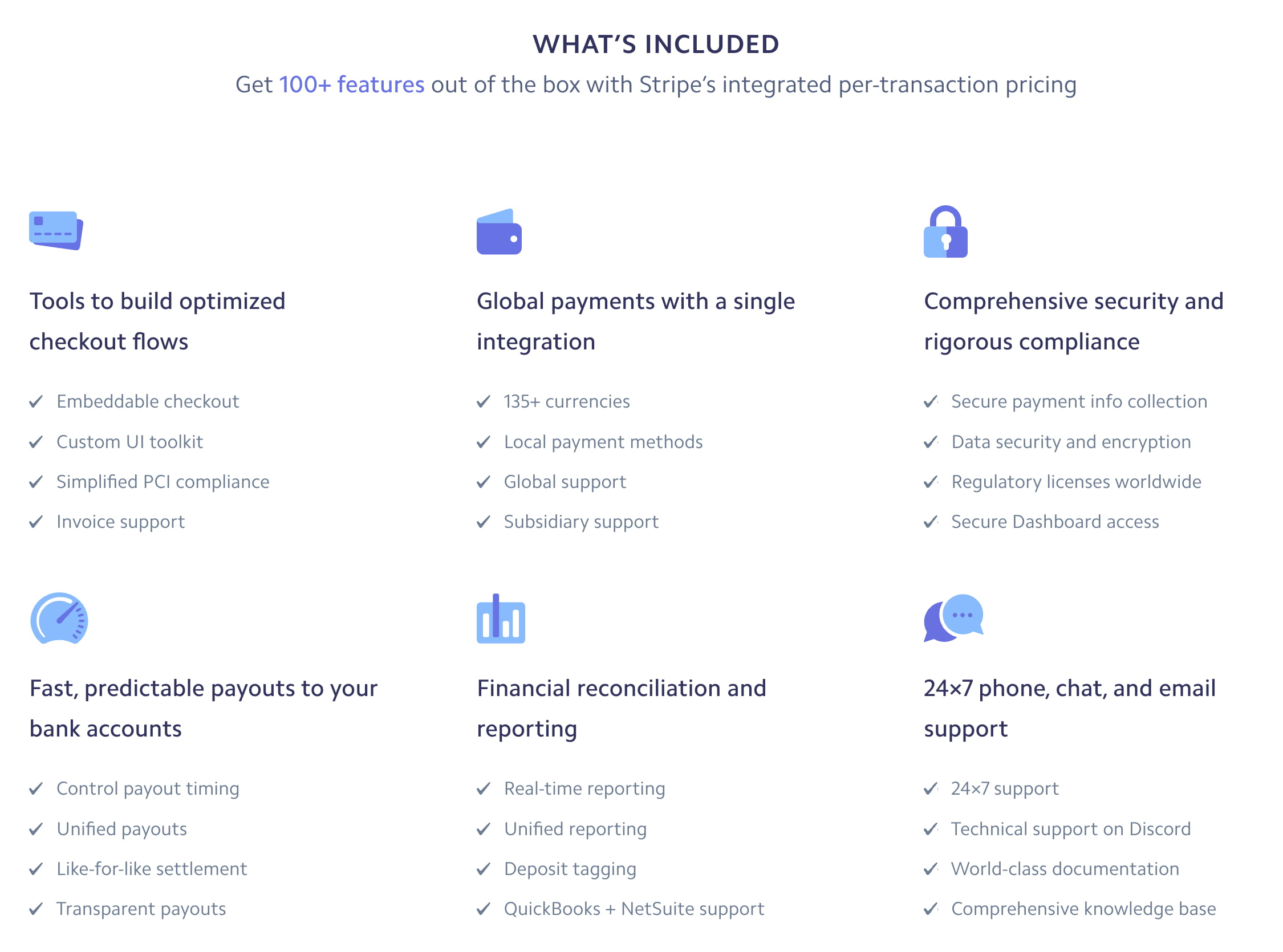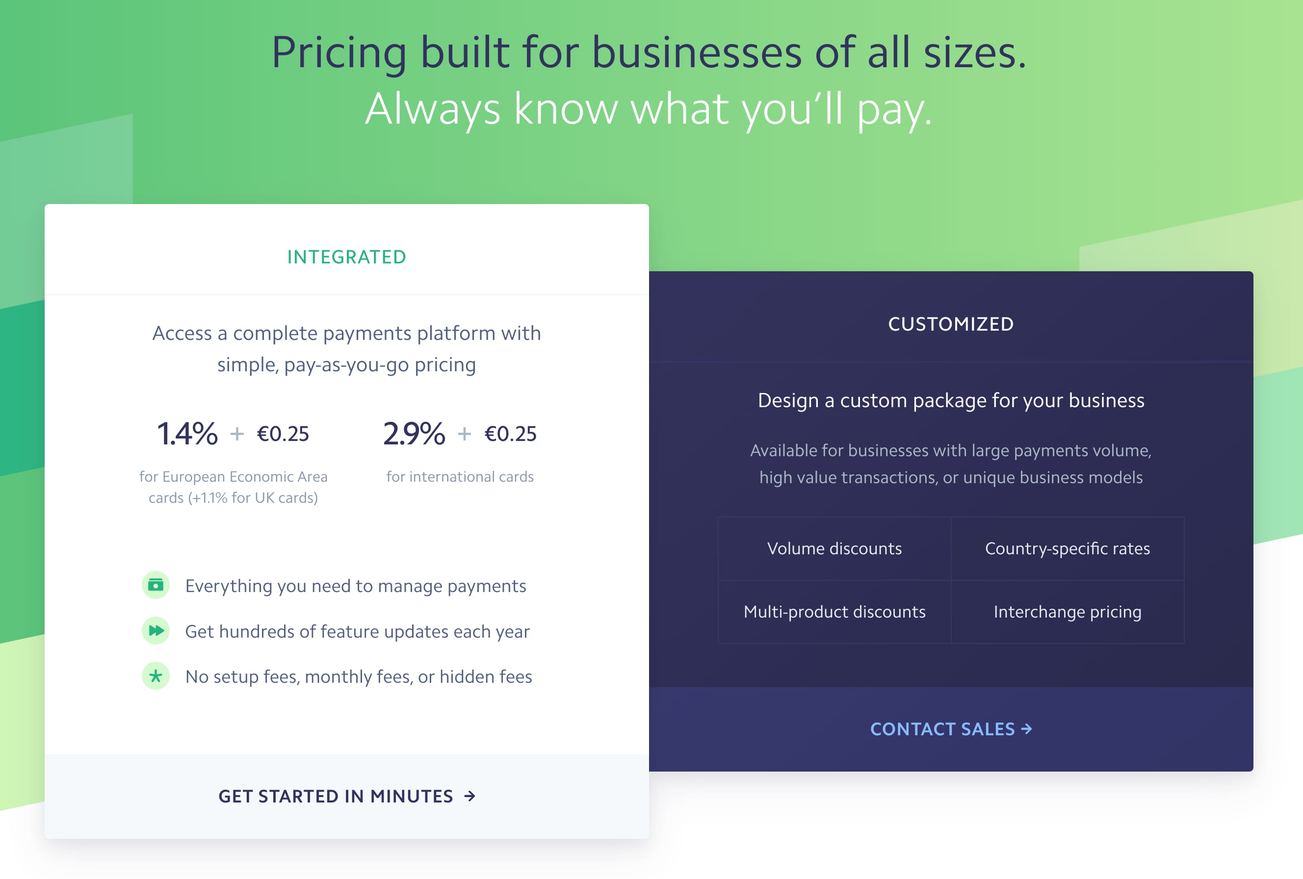 Stripe gets away with a simple pricing for everyone except for large customers. All features are highlighted, but further down the page, along with testimonials, existing customers, integration options, and FAQ. If you have a simple pricing, that’s a reference example to keep close.