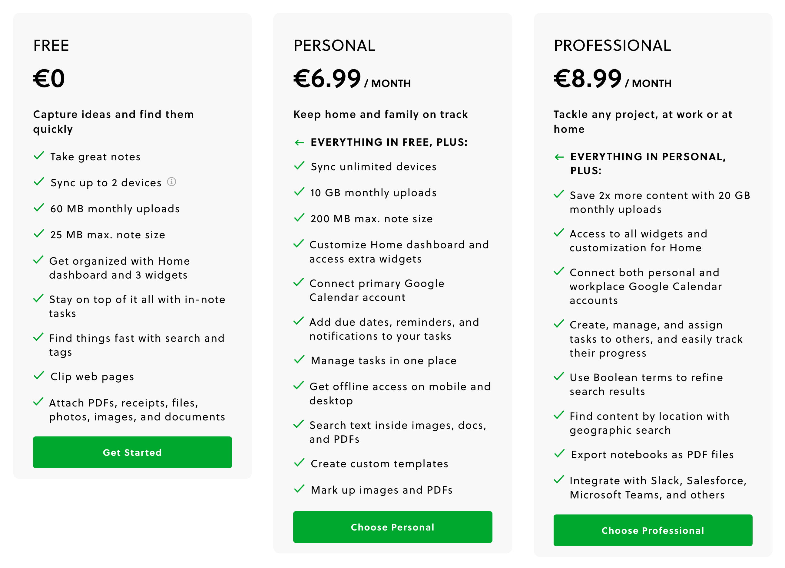 However, it’s important to show enough details to make it clear to customers what the differences between plans are. For a while, Evernote was just displaying the plans within a table but not explaining the difference between them. Also, it might not be very obvious how “Sign up” and “Free trial” differ. That’s slightly confusing and oversimplified.