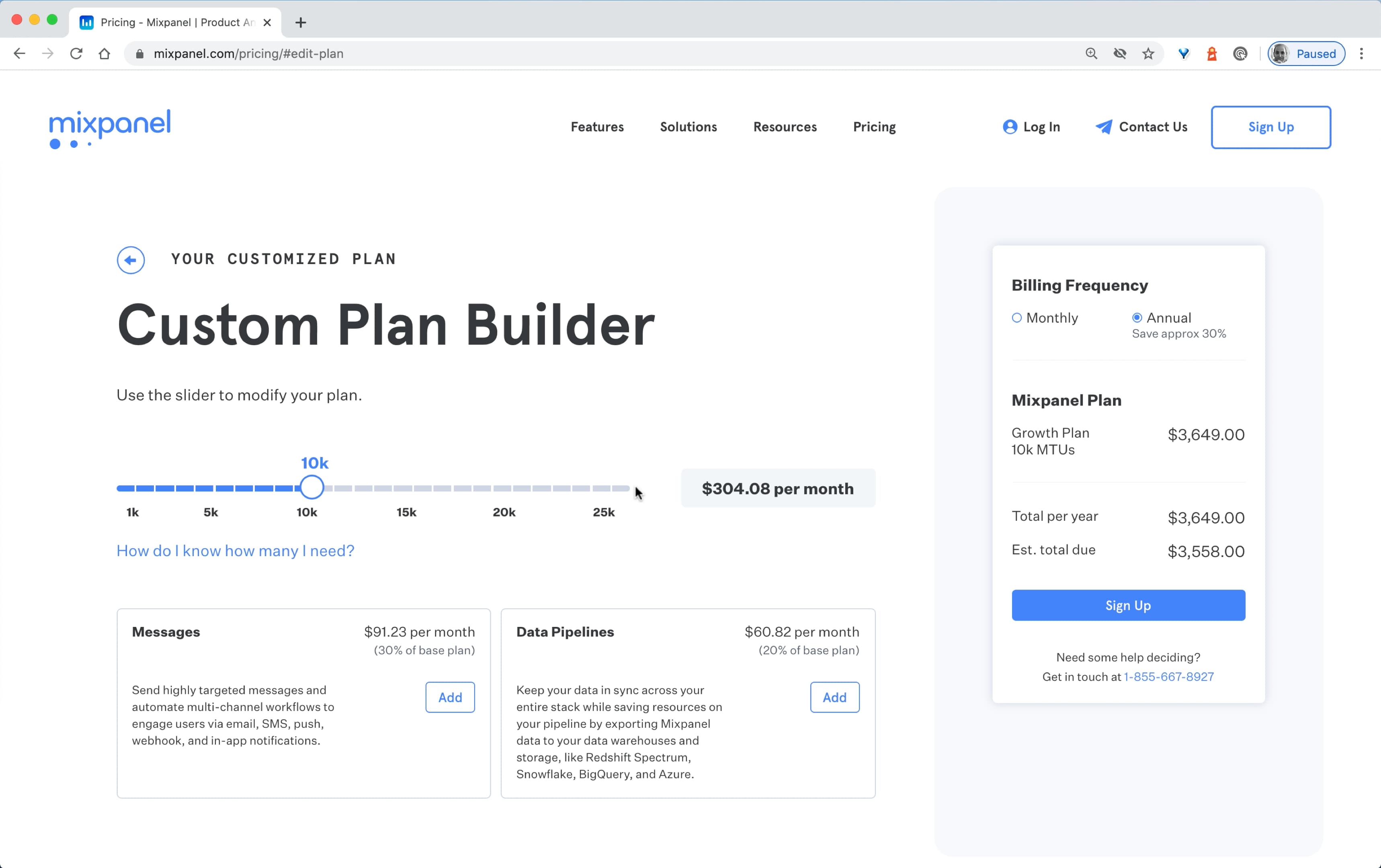 Mixpanel takes the number of MTUs into account, as well as any add-ons that the user might want to consider.