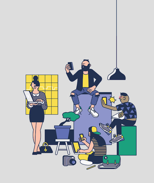 Very cool illustration for H’University. Loving the ripped pants and sport shoes. It has a certain coolness to it. Also the simplicity of how everything is drawn, using these dark borders, and the patterns on the clothing gives this illustration an extra punch.