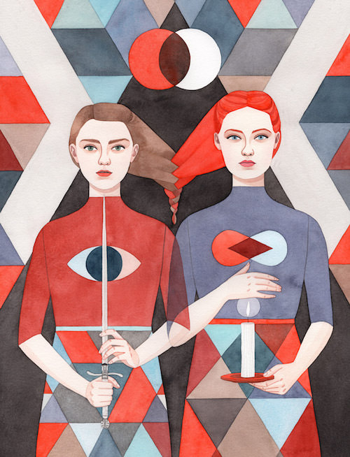 Interesting interpretation of the Game of Thrones sisters. Excellent colors and lines at work here. All resulting in a beautiful kinda watercolor style.