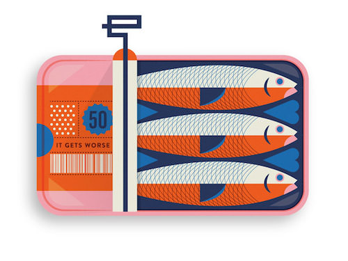 Beautiful work! An illustration with delicious details. I adore the lines on the sardines. Subtle textures just in the right amount. Who says orange can’t be combined with pink? Don’t they work well together here! It’s all a matter of how you apply colors.